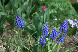 I appreciate grape hyacinths, small cone-like flowers that grow from fall-planted bulbs, more now that I have whole bunches of them popping up in front of my home.